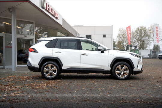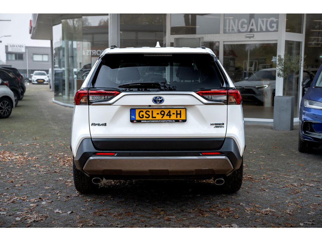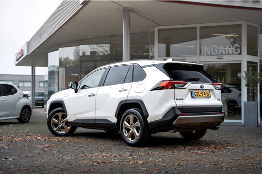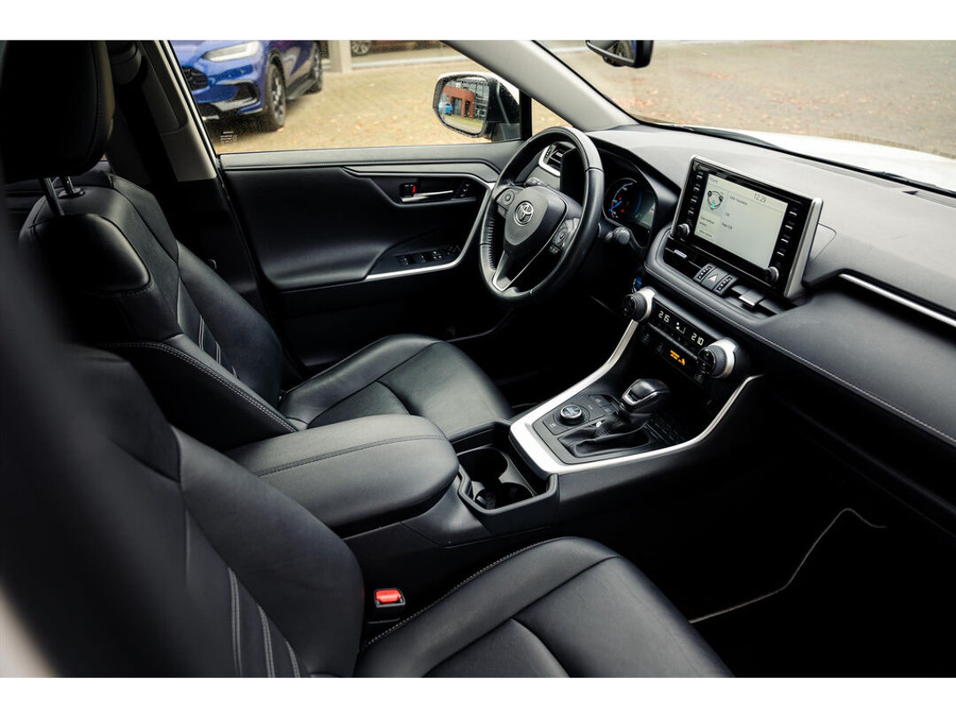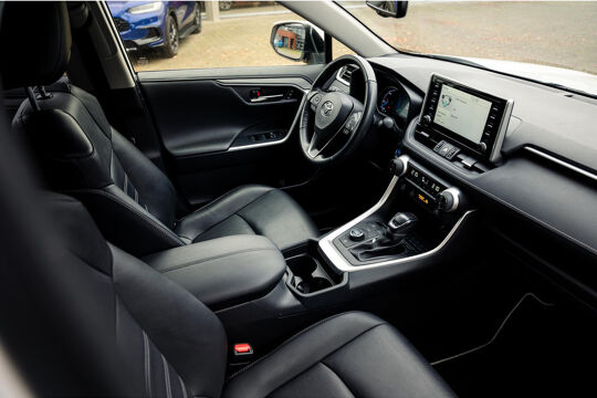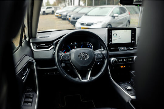 Alle technologie in de Toyota RAV4 is er op gericht om uw rit veilig en gemakkelijk te laten verlopen. Dit mooie, dealeronderhouden exemplaar uit 2022 heeft 61500 kilometer op de teller staan. Hybride auto's zoals deze staan er om bekend dat ze zuinig zijn met brandstof. Wat de weg ook doet, deze 4x4 heeft elke ondergrond stevig te pakken dankzij de vierwielaandrijving. Van de diverse pluspunten is ook het lederen interieur het noemen waard. 's Winters komen de verwarmbare voorstoelen heerlijk van pas. De elektrisch bedienbare achterklep opent met een druk op de knop. Bij de rijke uitrusting horen ook 18 inch lichtmetalen velgen, led-koplampen, aanhangerstabilisatie, elektrische handrem, donker getint glas achter en LED-achterlichten.