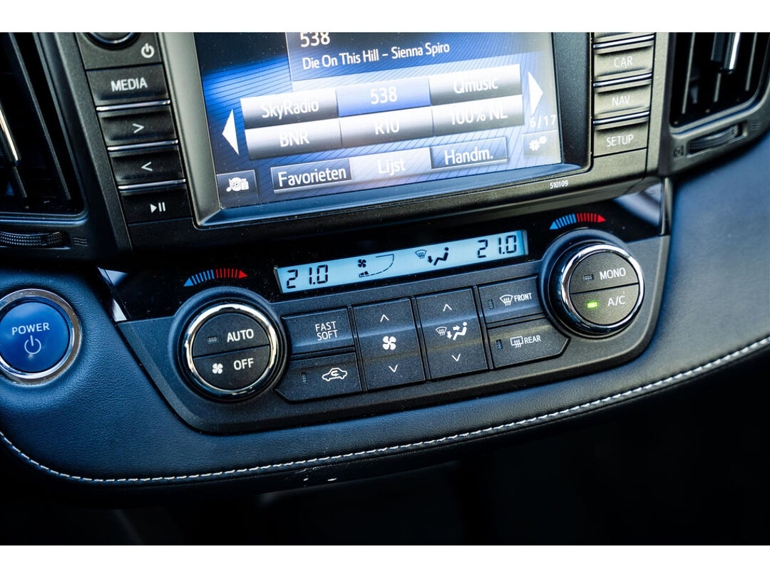De parkeerhulp met achteruitrijcamera geeft u duidelijk zicht op de ruimte achter de auto. Met adaptive cruise control houdt deze auto automatisch afstand tot uw voorligger. De auto is voorzien van een trekhaak en is een uitstekende caravantrekker. Bij de luxe van deze auto hoort ook automatische airconditioning. Natuurlijk is een complete auto als deze ook voorzien van sensoren die de omgeving in de gaten houden. Deze Toyota heeft niet alleen een automatisch inschakelbare verlichting aan boord, maar ook een regensensor. De uitrusting van deze Toyota is met origineel navigatiesysteem, audiobediening op het stuur, DAB+ tuner, keyless entry, buitentemperatuurmeter en automatisch dimmende binnenspiegel behoorlijk compleet.
