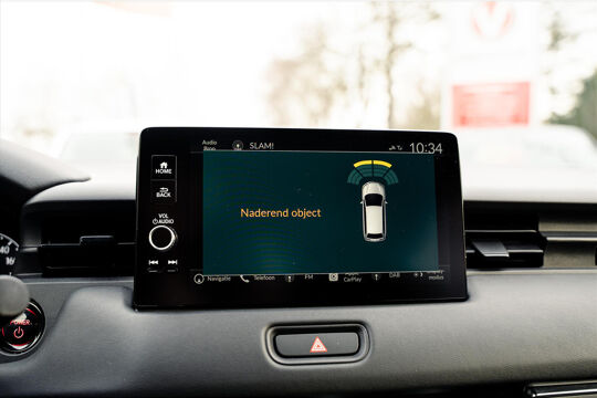 Deze HONDA biedt u niet alleen comfort en rijplezier, maar ook veiligheid. Actieve veiligheidssystemen houden voor u de weg in de gaten en reageren op onvoorziene situaties voordat u dat kunt. Dat de auto steeds meer taken van de bestuurder overneemt, merkt u bijvoorbeeld aan het systeem voor verkeersbord-detectie in deze HONDA. Botsingen met een voorligger gebeuren relatief vaak. De forward collision warning slaat tijdig alarm als dat risico ontstaat, zodat u kunt ingrijpen. De sensoren van de lane assist registreren de lijnen op de weg en waarschuwen als u onbedoeld in de andere strook dreigt te belanden. Verder is deze auto uitgerust met hill start assist, rem-assistent en bandenspanningcontrolesysteem.