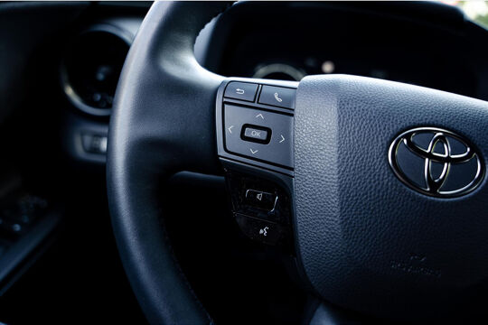 Stuurwiel v.z.v. bedieningsknoppen voor audio, telefoon, Voice Recognition Head-Up Display en Toyota Safety Sense