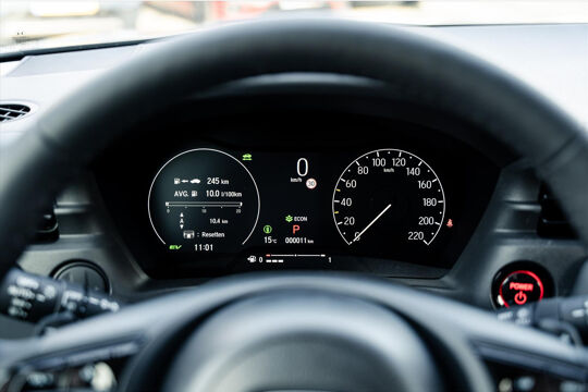 Nooit meer problemen bij achteruitrijden of inparkeren. De parkeerhulp met achteruitrijcamera houdt alles in de gaten! Adaptive cruise control houdt de ingestelde snelheid vast en houdt afstand tot het voertuig voor u. Het navigatiesysteem brengt u vlot naar uw bestemming, terwijl u luistert naar het glasheldere geluid van het audiosysteem met DAB-radio. Dankzij automatische airconditioning is het interieur behaaglijk warm of verfrissend koel. De elektronische systemen in deze HONDA helpen u actief om comfortabeler te rijden. Een automatisch inschakelbare verlichting en een regensensor houden de omstandigheden onderweg in de gaten. Ook keyless entry, automatisch dimmende spiegels, isofix-aansluiting, centrale deurvergrendeling met afstandsbediening en bagage afdekhoes zijn aan boord.