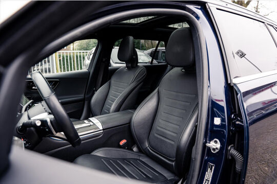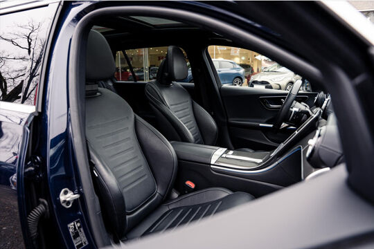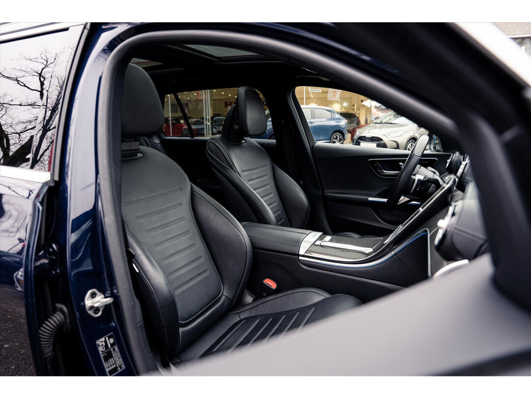 Auto's als deze Mercedes C-Klasse Estate bieden tegelijk rijdynamiek, comfort en degelijkheid. Bent u bestand tegen een beetje bekijks? Dan zal de AMG-styling u zeker aanspreken. De aandrijving van deze Mercedes wordt verzorgd door een viercilinder motor en een automatische transmissie. Een blik van dichtbij onthult meteen twee mooie pluspunten: het lederen interieur en de elektrisch bedienbare achterklep. Dankzij de elektrische stoelbediening is het gemakkelijk om de optimale zitpositie te vinden. Wat een heerlijk ruim gevoel en zoveel licht geeft dat glazen panoramadak! Tot de voorzieningen van deze auto behoren high-performance LED-koplampen, AMG-styling, warmtewerend glas, dynamisch onderstel, zwarte hemelbekleding en neerklapbare achterbank.